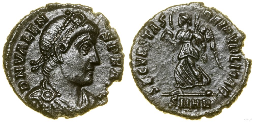 Opis: | Cesarstwo Rzymskie - Walens (364–378), follis, (364–378), Heraclea, Aw:Popiersie władcy w prawo, D N VALENS P F AVG, Rw: Wiktoria krocząca w lewo, trzymająca wieniec i gałązke palmową, SECVRITAS REI PVBLICAE, w odcinku SΜHB |