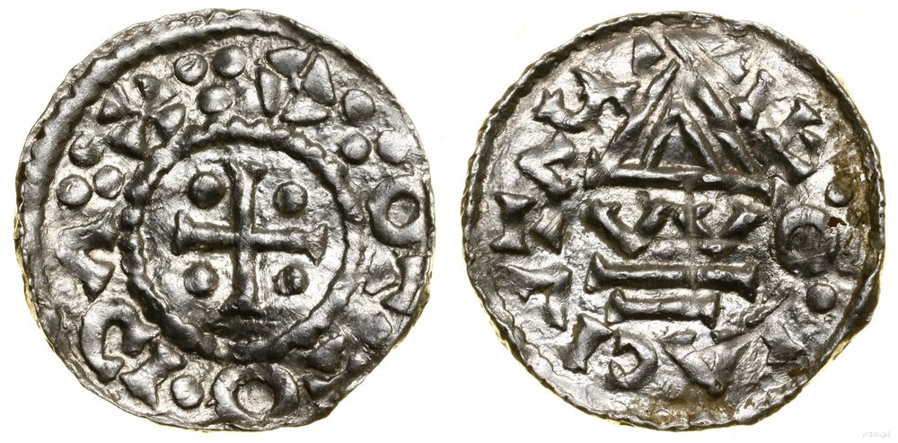 Opis: | Niemcy - Bawaria - Ratyzbona - ks. Otto (976–982), denar, Ratyzbona, mincerz Vulfa, Aw: Krzyż, w każdym kącie kulka, ⁖+⁖+⁖ OTTO • IƆΛ, Rw: Dach kaplicy, pod nim VVO, IŁ• - • IΛ CIVITΛS |