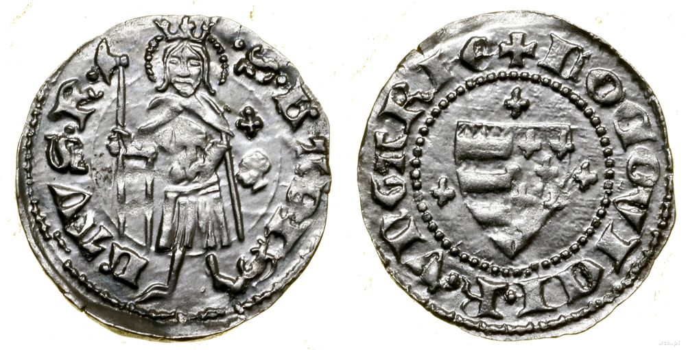 Opis: | Węgry - Ludwik I Andegaweński (1342–1382), denar, (1366–1379), Buda, Aw: Tarcza andegaweńska, wokół trzy lilie, + • LODOVICI • R • VNGARIE, Rw: Św. Władysław stojący na wprost, trzymający halabardę i jabłko królewskie, po prawej znak menniczy w formie głowy w lewo i lilia powyżej, S LADIS LAVS R |