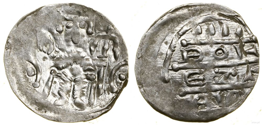 Opis: | Polska - Bolesław IV Kędzierzawy (1146–1173), denar, (1157–1166), Aw: Cesarz siedzący na tronie na wprost, trzymający lilie w dłoniach, po bokach znaki .) - (., Rw: Napis poziomy w trzech liniach BOL / EZL / AVS |