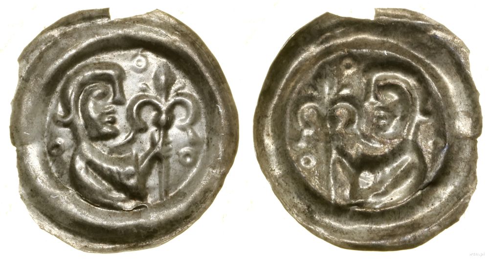 Opis: | Polska - Krakowskie - Leszek Biały (1202–1227) lub następcy, brakteat, Długowłosa półpostać w prawo, trzymająca laskę zwieńczoną lilią, wokół trzy pierścienie |