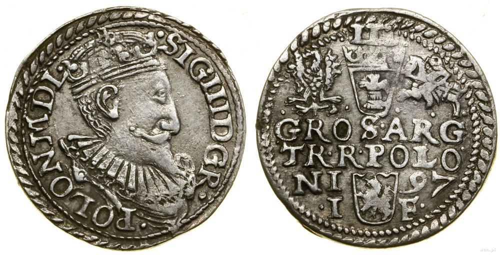 Opis: | Polska - Zygmunt III Waza (1587–1632) - monety koronne, trojak, 1597, Olkusz, korona z wąskim rondem, na awersie POLON M D L |