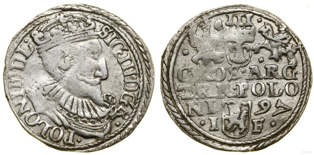 Opis: | Polska - Zygmunt III Waza (1587–1632) - monety koronne, trojak, 1597, Olkusz, korona z wąskim rondem, na awersie POLONI M D L, wariant z interpunkcją w formie rombów na rewersie |