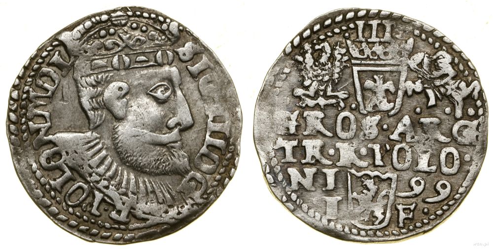 Opis: | Polska - Zygmunt III Waza (1587–1632) - monety koronne, trojak, 1599, Olkusz, głowa starego typu, z napisem POLON i końcówką L |