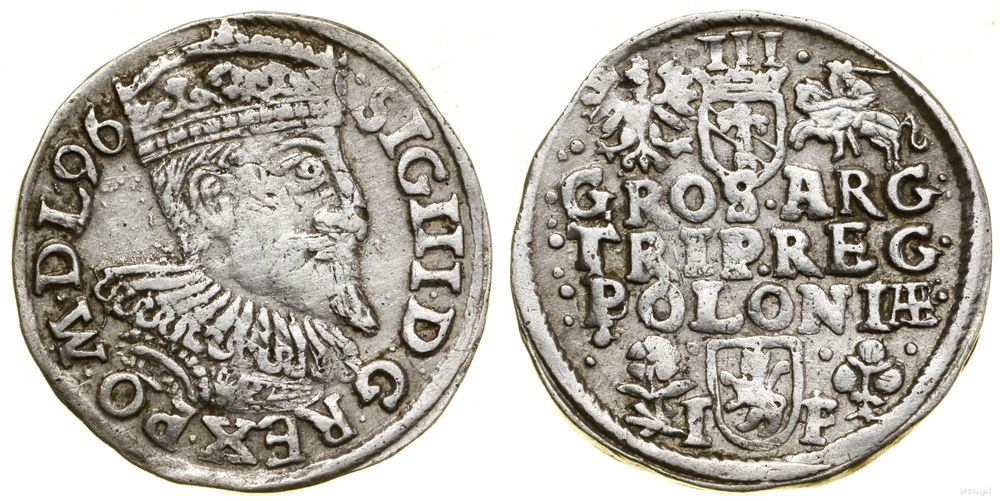 Opis: | Polska - Zygmunt III Waza (1587–1632) - monety koronne, trojak, 1596, Wschowa, na rewersie dwa kwiatki u dołu, po bokach herbu Lewart, litery I-F, końcówka POLONIAE, korona płaska, kropka pomiędzy 9.6 w dacie |