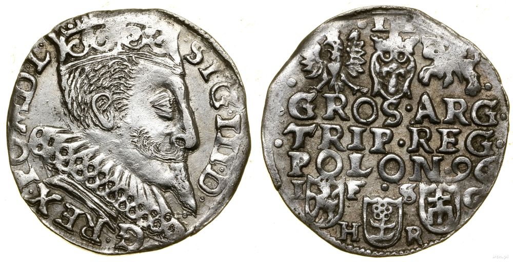 Opis: | Polska - Zygmunt III Waza (1587–1632) - monety koronne, trojak, 1596, Bydgoszcz, Róża i litery H - R (Hermana Rudigera, zarządcy mennicy) u dołu rewersu, duża głowa króla |