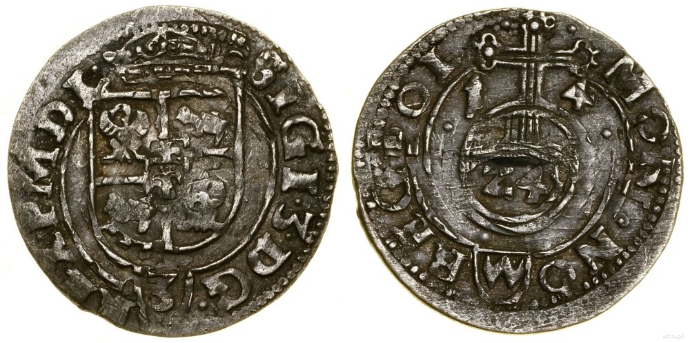 Opis: | Polska - Zygmunt III Waza (1587–1632) - monety koronne, półtorak, 1614, Bydgoszcz, odmiana z pięciopolową tarczą herbową, na rewersie z MON NO - REG POL |