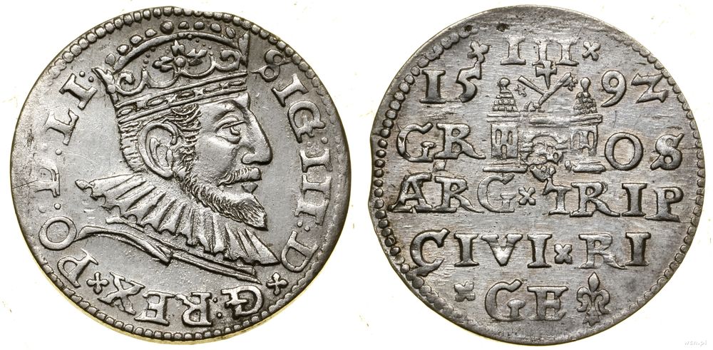 Opis: | Polska - Zygmunt III Waza (1587–1632) - miasto Ryga, trojak, 1592, Ryga, końcówka napisu LI na awersie |