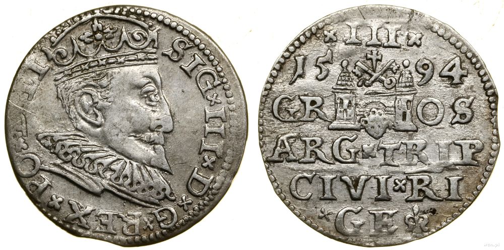 Opis: | Polska - Zygmunt III Waza (1587–1632) - miasto Ryga, trojak, 1594, Ryga, na awersie LI, interpunkcja w formie krzyżyków |