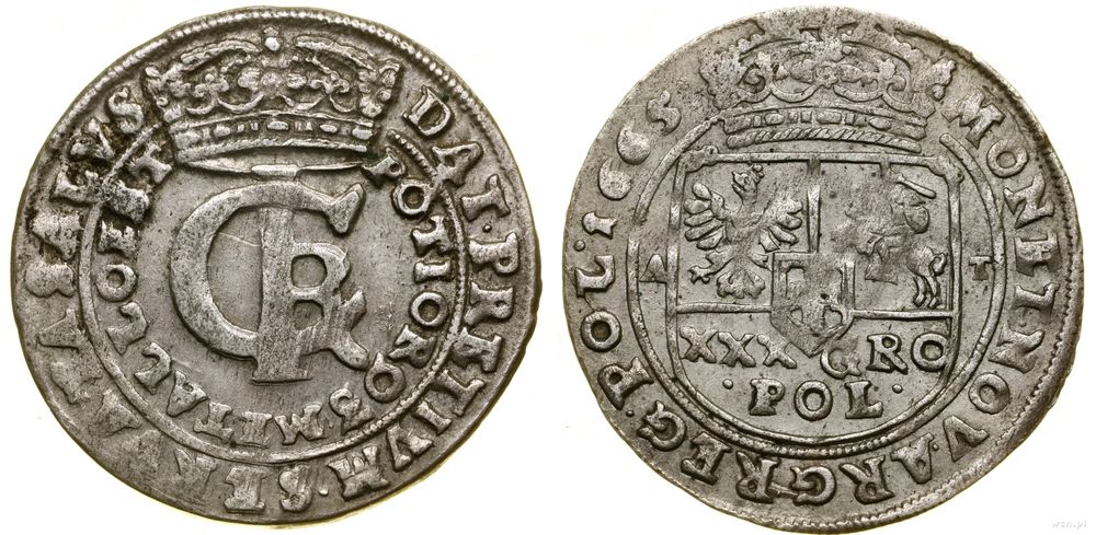 Opis: | Polska - Jan II Kazimierz Waza (1649–1668) - monety koronne, złotowka (tymf), 1665 AT, Bydgoszcz, data na rewersie, SERVATA SALVS w legendzie awersu |