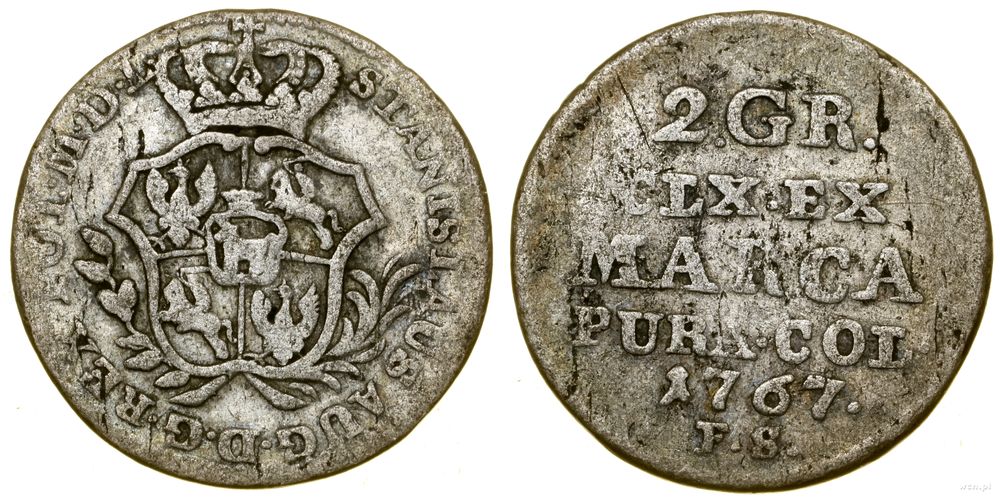 Opis: | Polska - Stanisław August Poniatowski (1764–1795) - monety koronne, półzłotek (2 grosze), 1767 FS, Warszawa, tarcza herbowa zwężona u dołu |