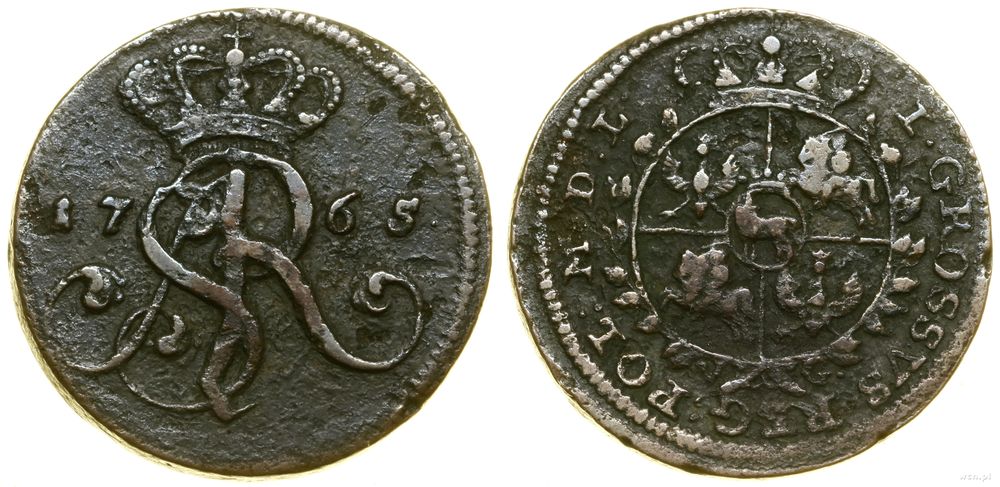 Opis: | Polska - Stanisław August Poniatowski (1764–1795) - monety koronne, grosz, 1765 VG, Kraków, długi haczyk litery A w monogramie, litery V - G pod tarczą herbową |