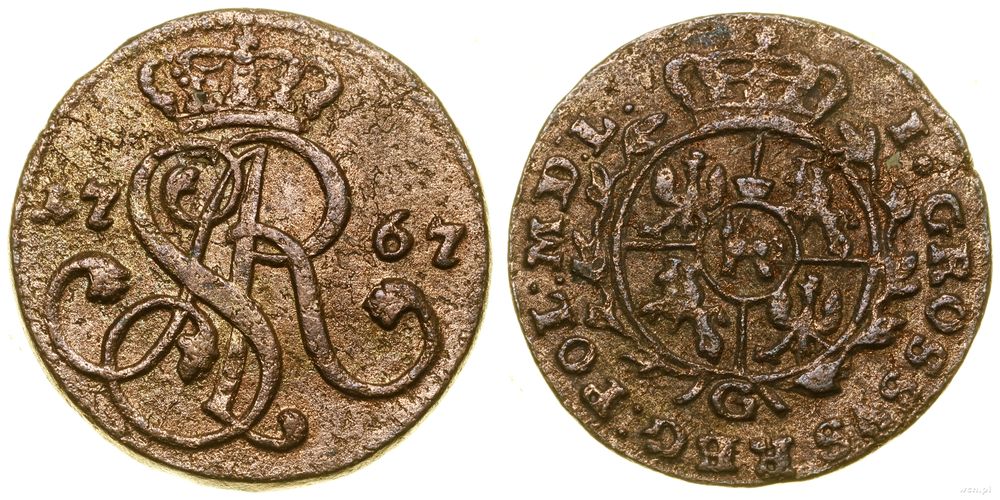 Opis: | Polska - Stanisław August Poniatowski (1764–1795) - monety koronne, grosz, 1767 G, Kraków, bez kropki po dacie, wieniec bez jagód, brak kropki po GROSSVS |
