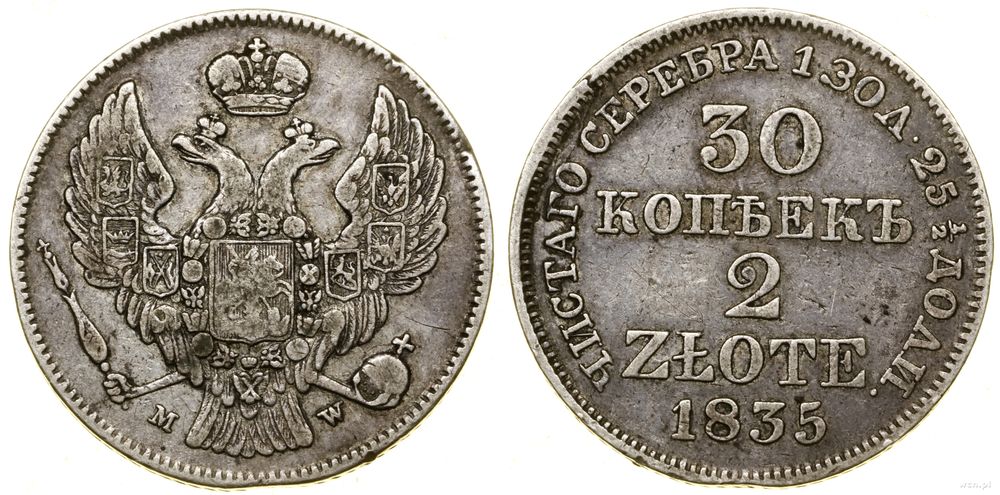 Polska, 30 kopiejek = 2 złote, 1835 MW