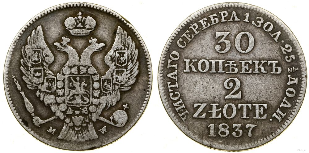 Polska, 30 kopiejek = 2 złote, 1837 MW