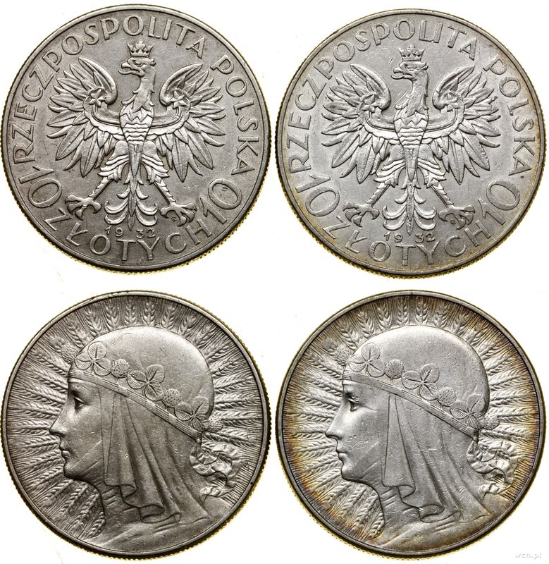 Opis: | Polska - II Rzeczpospolita Polska (1918–1939) - monety obiegowe, zestaw: 2 x 10 złotych, 1932, Warszawa, głowa kobiety w czepcu – ze znakiem menniczym pod szponem Orła |