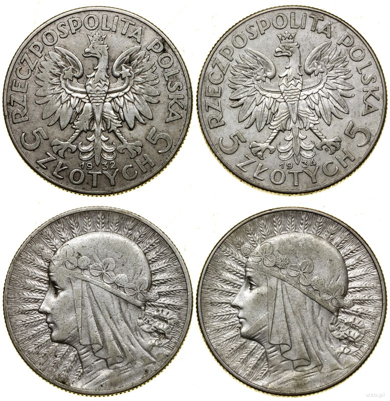 Opis: | Polska - II Rzeczpospolita Polska (1918–1939) - monety obiegowe, zestaw: 2 x 5 złotych, Londyn i Warszawa, głowa kobiety w czepcu, roczniki 1932 (III-) i 1934 (III/III+) |