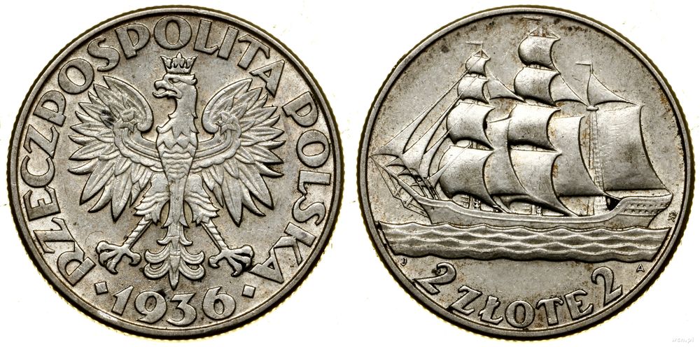 Opis: | Polska - II Rzeczpospolita Polska (1918–1939) - monety obiegowe, 2 złote, 1936, Warszawa, Żaglowiec |