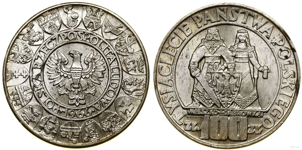 Opis: | Polska - Polska Rzeczpospolita Ludowa (1952–1989) - monety obiegowe i kolekcjonerskie, 100 złotych, 1966, Warszawa, Tysiąclecie Państwa Polskiego – Mieszko i Dąbrówka |