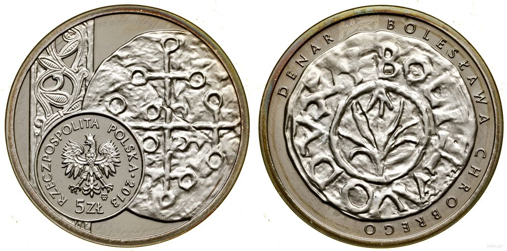Opis: | Polska - III Rzeczpospolita Polska (od 1989) - monety kolekcjonerskie, 5 złotych, 2013, Warszawa, Historia Monety Polskiej – denar Bolesława Chrobrego |