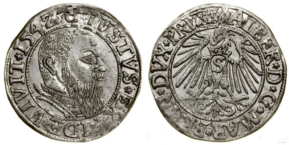 Opis: | Prusy Książęce (1525–1657) - Albert Hohenzollern (1525–1568), grosz, 1542, Królewiec, końcówka legendy rewersu PRVSS |