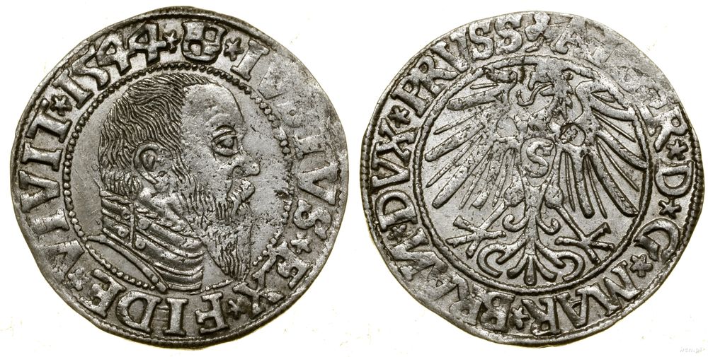 Opis: | Prusy Książęce (1525–1657) - Albert Hohenzollern (1525–1568), grosz, 1544, Królewiec, popiersie księcia z wysokim kołnierzem, końcówka legendy rewersu PRVSS, trójlistek z ogonkiem |