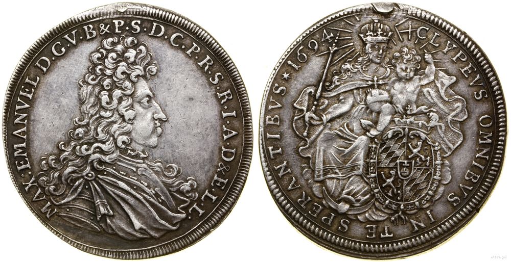 Opis: | Niemcy - Bawaria - Maksymilian II Emanuel (1679–1726), talar, 1694, Monachium, Aw: Popiersie księcia w prawo, MAX EMANVEL D G V B & P S D C P R S R I A D & E L L; Rw: Madonna z Dzieciątkiem, poniżej tarcza herbowa, CLYPEVS OMNIBVS IN TE SPERANTIBVS 1694 |