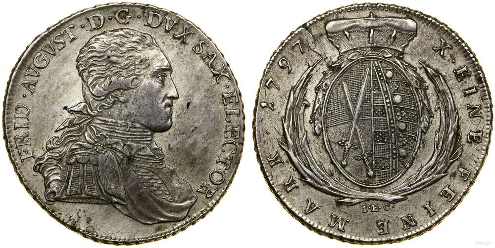 Opis: | Niemcy - Saksonia - linia albertyńska (1547–1918) - Fryderyk August III (1763–1806), talar, 1797 IEC, Drezno |