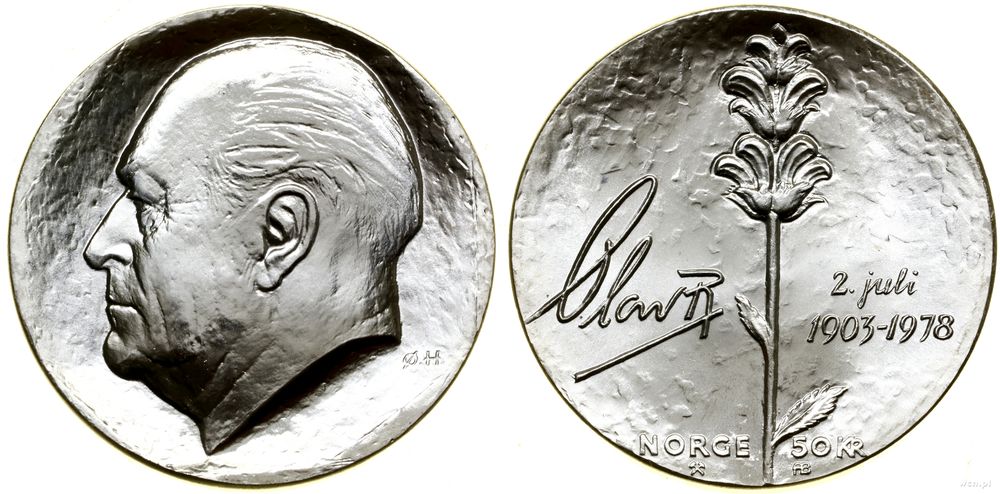 Opis: | Norwegia - Olaf V (1957–1991), 50 koron, 1978, Kongsberg, 75. rocznica urodzin króla Olafa V |