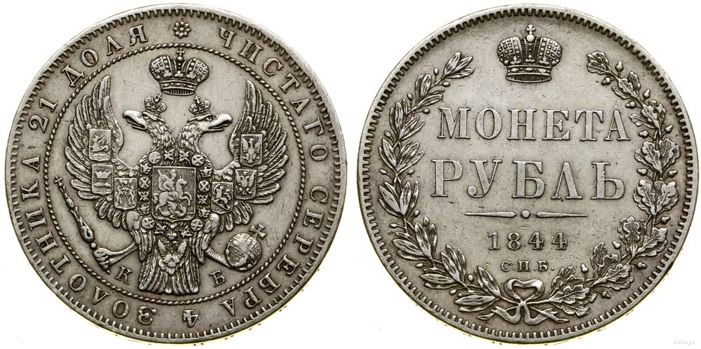 Opis: | Rosja - Mikołaj I (1825–1855), 1 rubel, 1844 СПБ КБ, Petersburg, na awersie w ЗОЛОТНИКА litera K z prostą nóżką, cyfry 44 w dacie zamknięte |