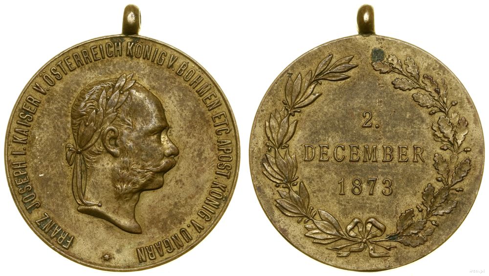 Opis: | Austria - Franciszek Józef (1848–1916), Medal Wojenny (Kriegsmedaille), od 1873, Głowa w prawo, FRANZ JOSEPH I. KAISER V. ÖSTERREICH KÖNIG V. BÖHMEN ETC. APOST. KÖNIG V. UNGARN, na stronie odwrotnej wieniec, w którym 2. / DECEMBER / 1873, odznaczenie jednoczęściowe, mocowane na wstążkę, brak wstążki |