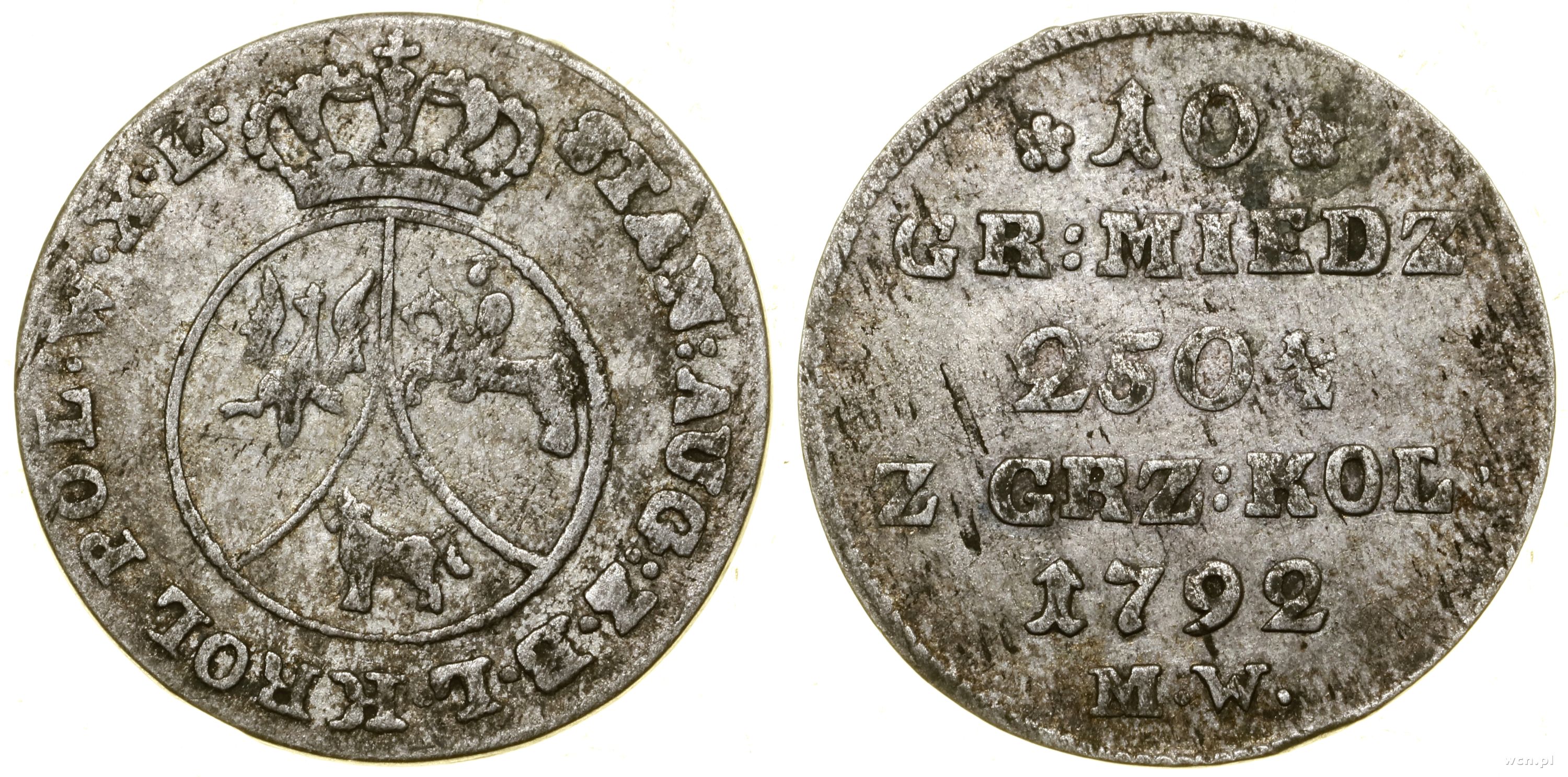 Polska, 10 groszy miedziane, 1792 MW