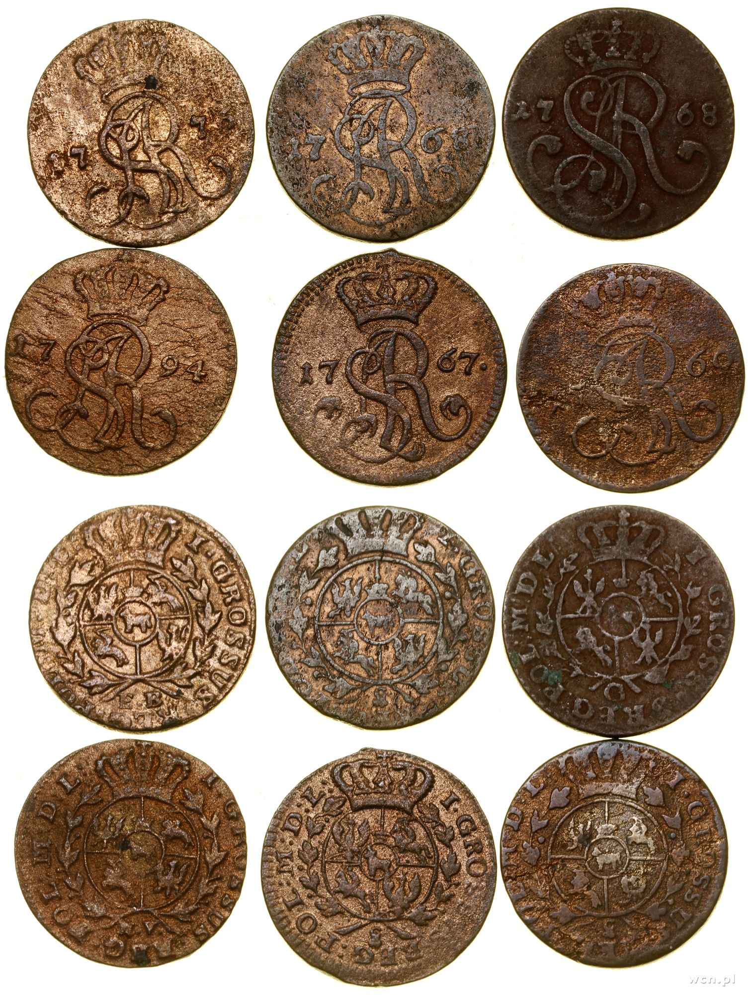 1. 1 grosz 1767 g (Kraków) 2. 1 grosz 1768 G (Kraków) 3. ... | III/IV |