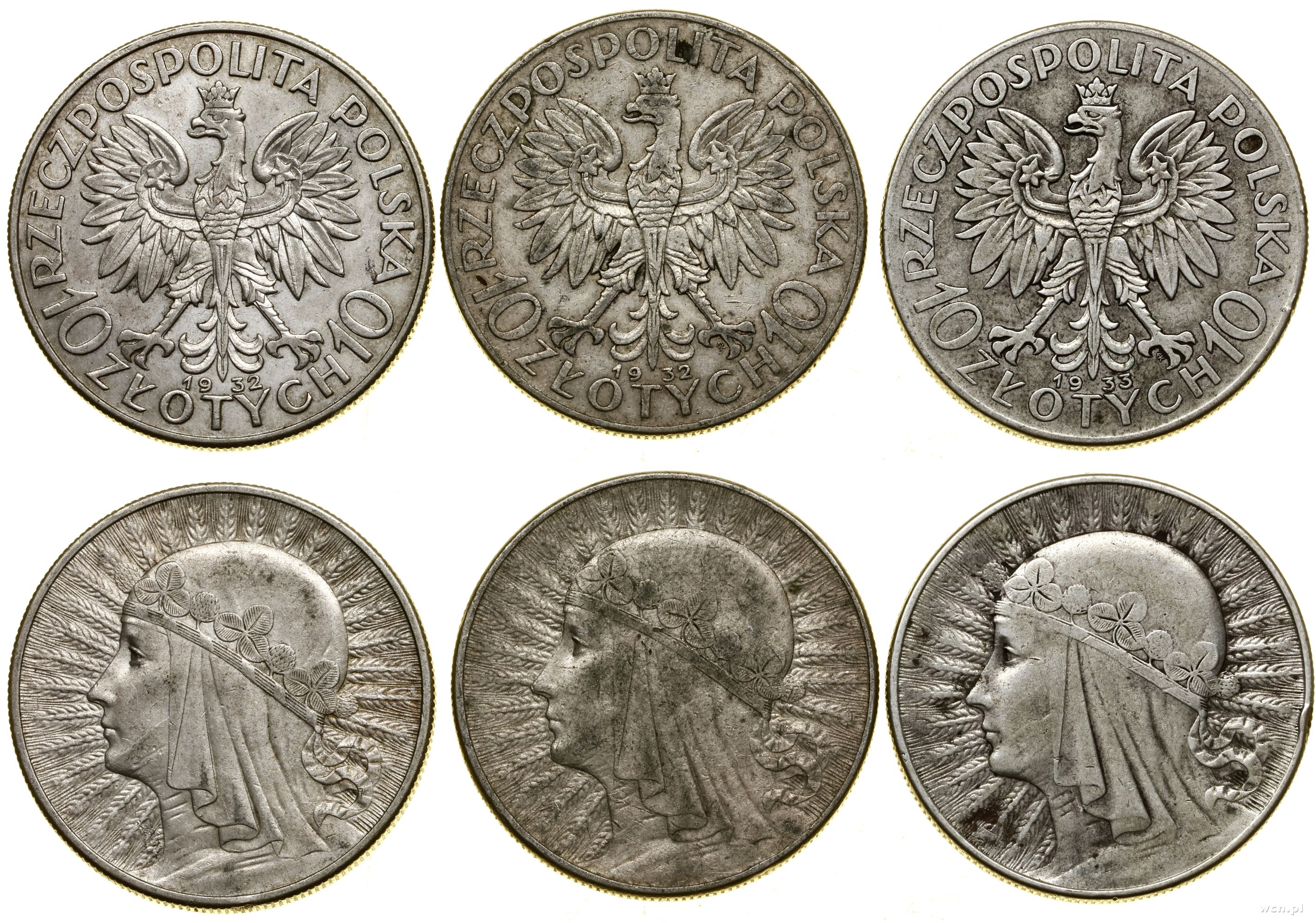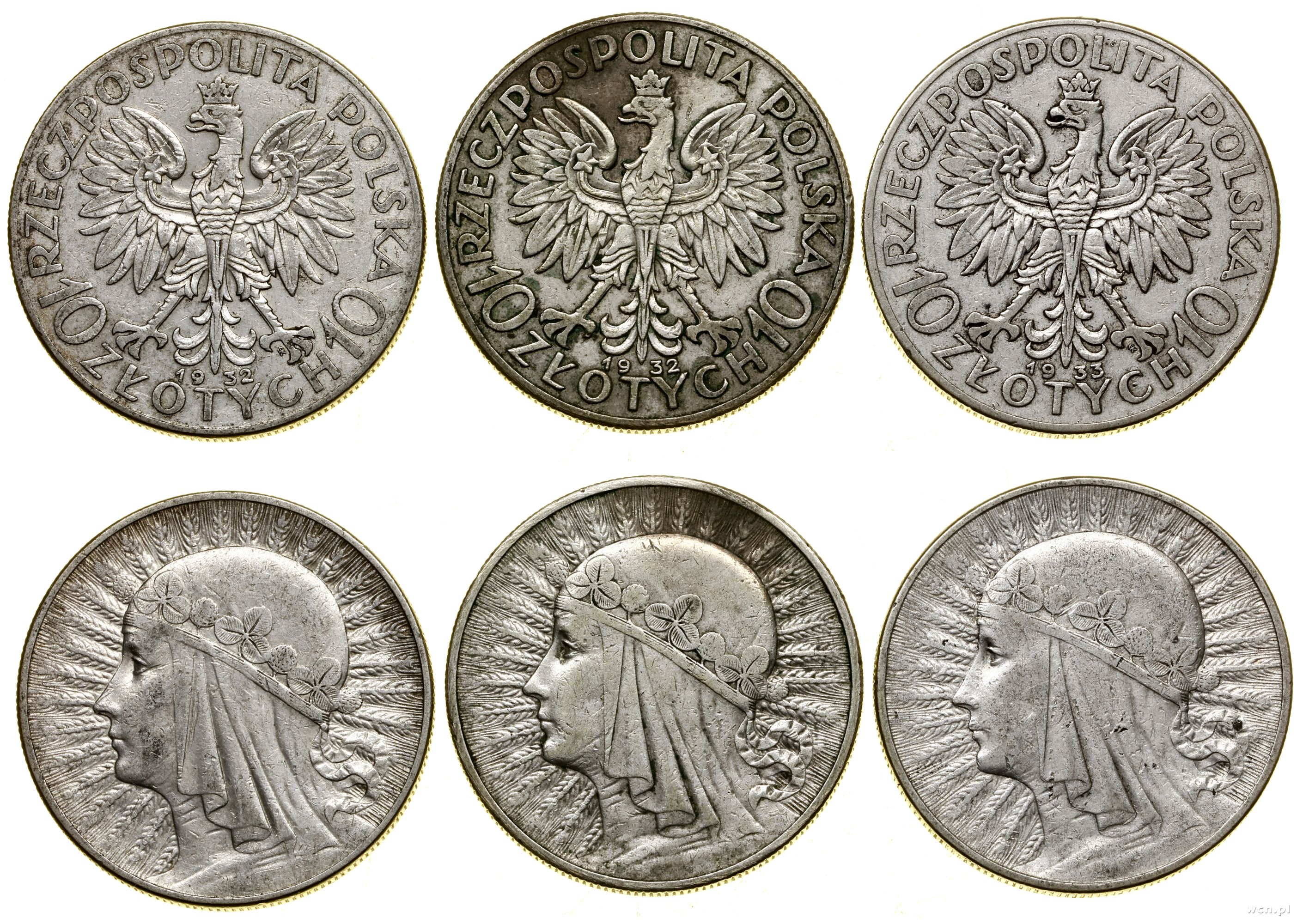 Polska, zestaw 3 x 10 złotych, 1932–1933