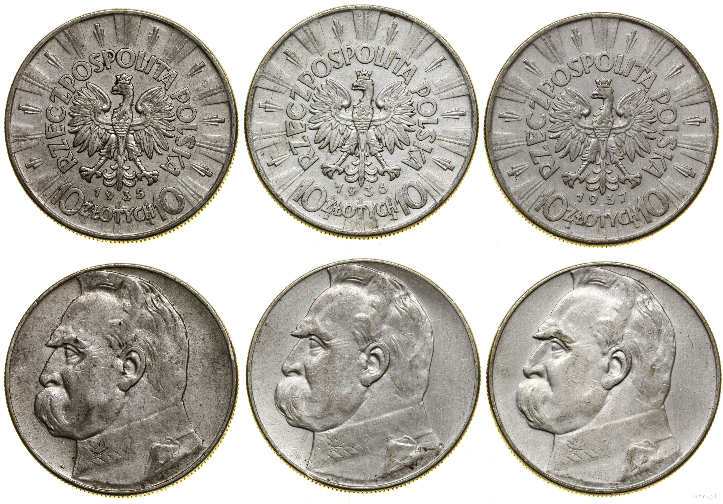 Polska, zestaw 3 x 10 złotych, 1935–1937
