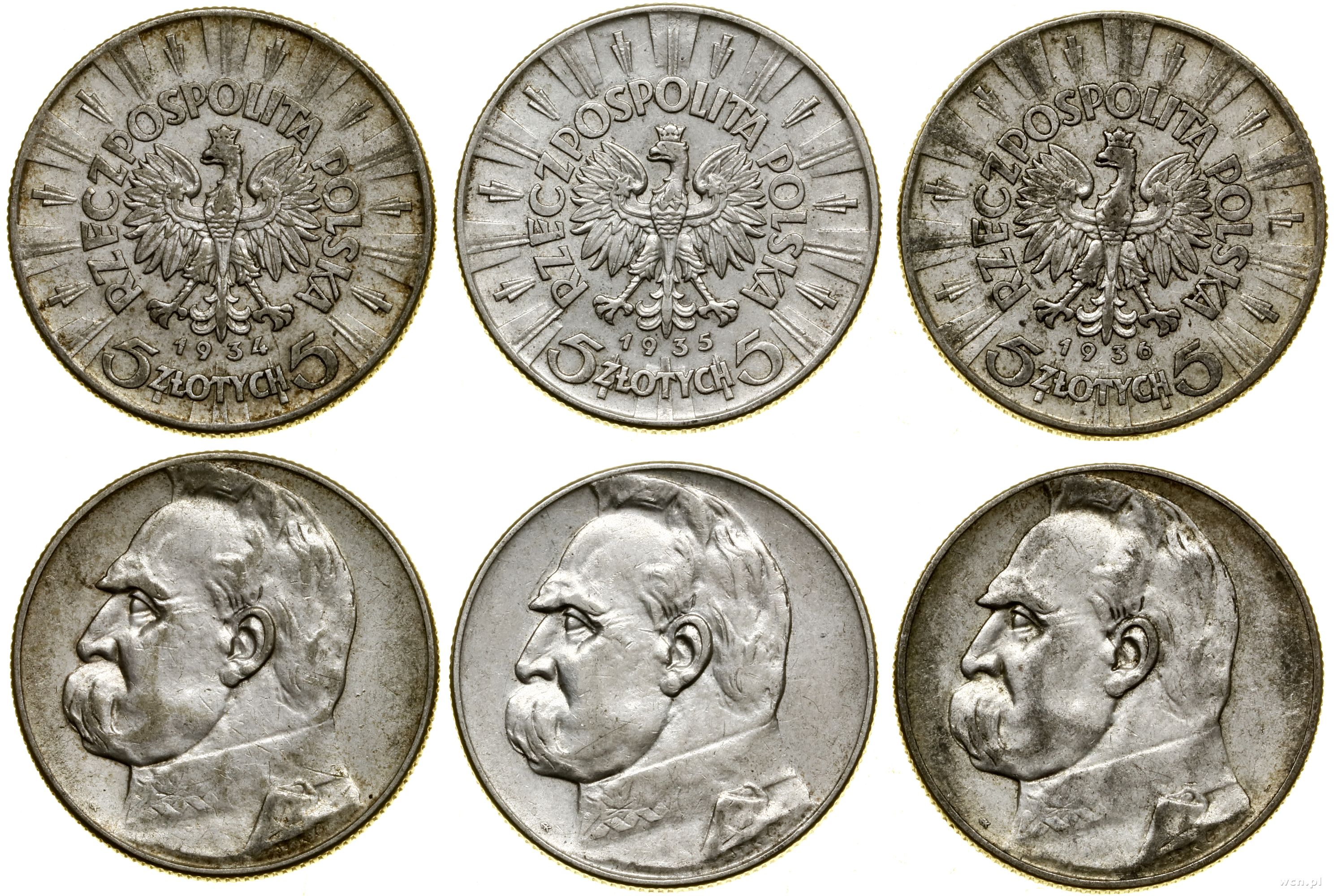 Polska, zestaw 3 x 5 złotych, 1934–1936