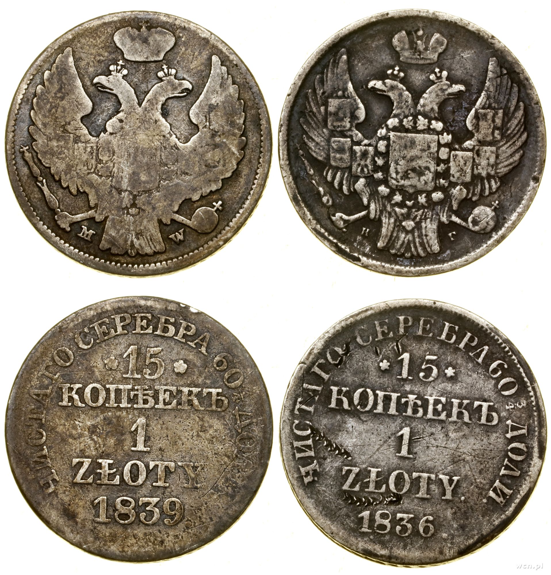 1. 15 kopiejek = 1 złoty 1836 НГ, Petersburg 2. 15 kopiej... | IV |
