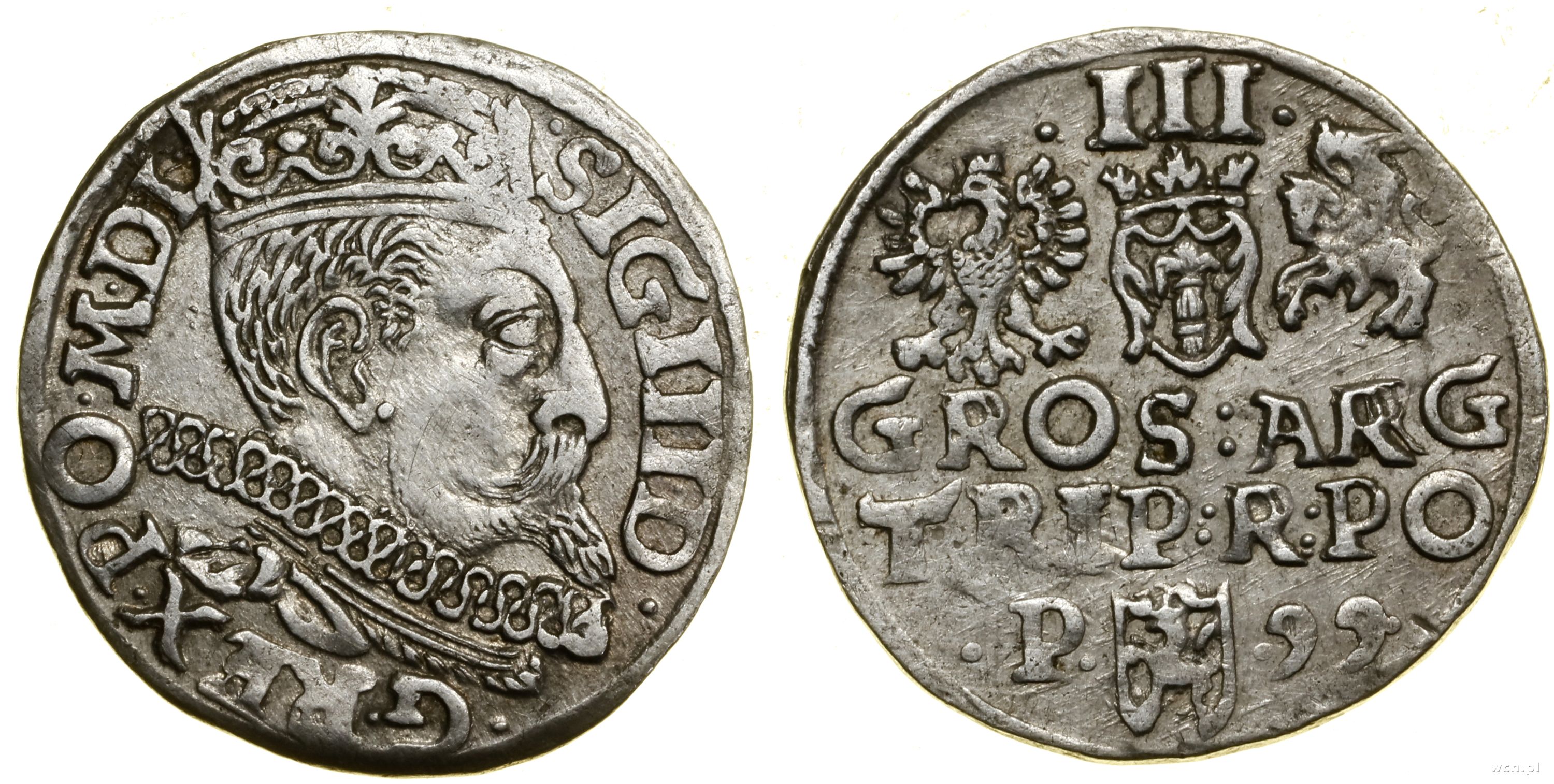 głowa króla z krótką brodą i koroną z wysokim rondem, war... | III/III+ |