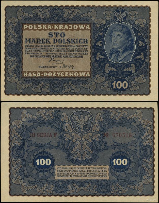 Polska, 100 marek polskich, 23.08.1919