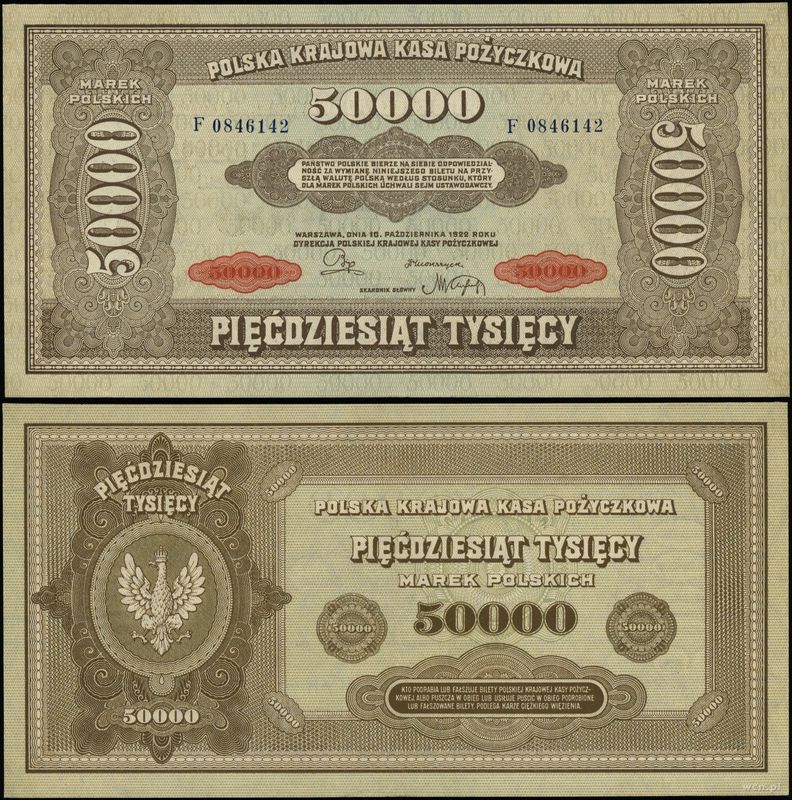 Opis: | Polska - II Rzeczpospolita Polska (1918–1939) - emisje przed reformą Władysława Grabskiego, 50.000 marek polskich, 10.10.1922, seria F, numeracja 0846142 |