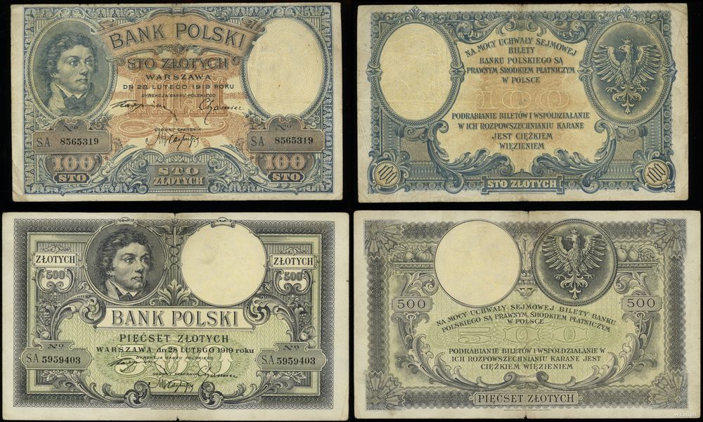 Polska, zestaw: 100 oraz 500 złotych, 28.02.1919