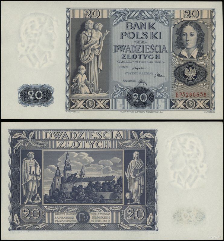 Opis: | Polska - II Rzeczpospolita Polska (1918–1939) - emisje po reformie Władysława Grabskiego, 20 złotych, 11.11.1936, seria BP, numeracja 5280658 |