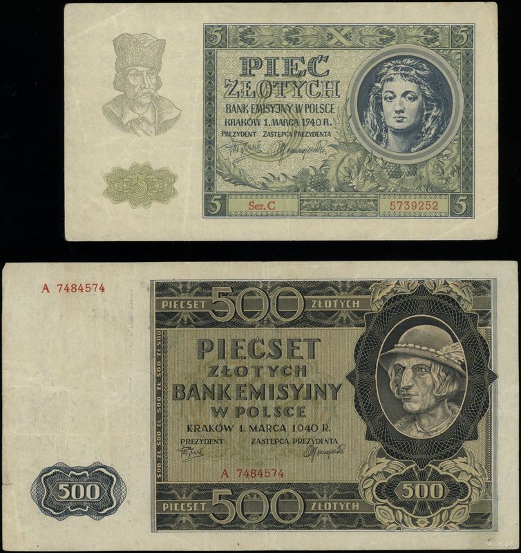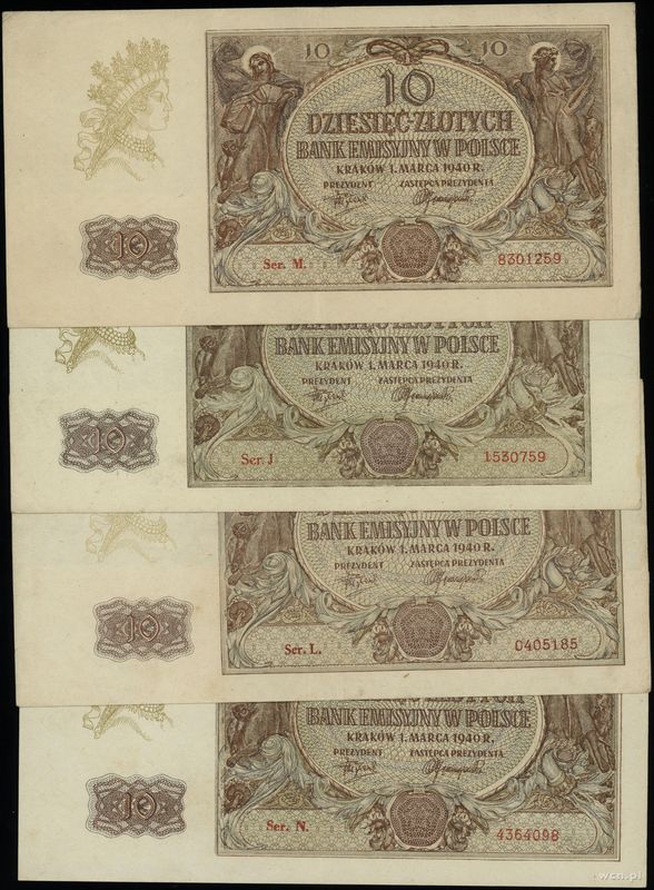 Opis: | Polska - Generalna Gubernia (1939–1945) - Bank Emisyjny w Polsce, zestaw 11 banknotów, 1.03.1940, w zestawie: 1, 2, 5, 4 x 10, 3 x 20 oraz 500 złotych |