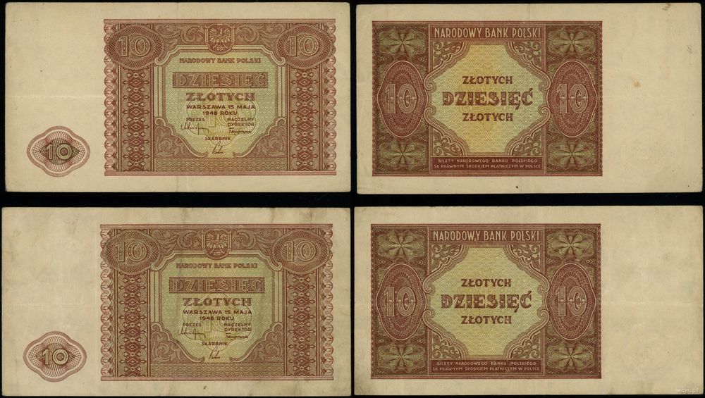 Opis: | Polska - Polska powojenna (1944–1952), zestaw: 2 x 10 złotych, 15.05.1946, bez oznaczenia serii i numeracji |