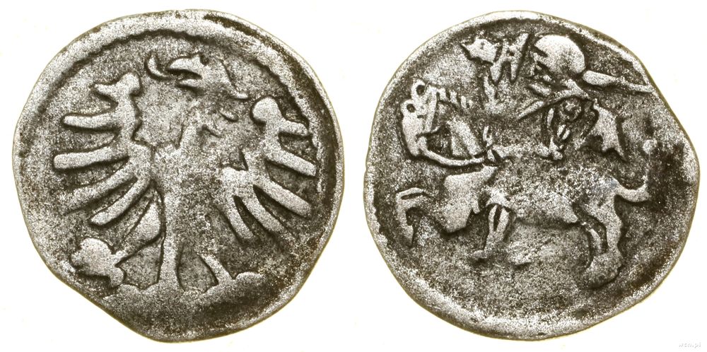 Opis: | Polska - Aleksander Jagiellończyk (1501–1506), denar litewski, bez daty, Wilno, Aw: Orzeł z głową w lewo; Rw: Pogoń w lewo, za nią gotycka litera A |