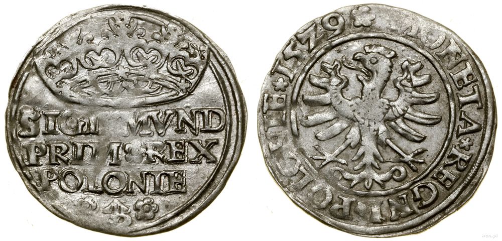 Opis: | Polska - Zygmunt I Stary (1506–1548) - monety koronne, grosz, 1529, Kraków, herb Odrowąż między rozetami |