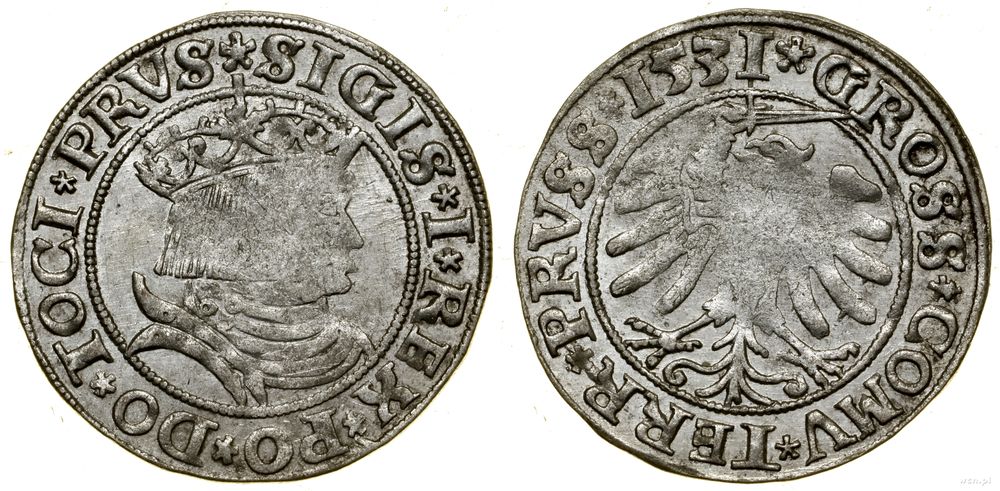 Opis: | Polska - Zygmunt I Stary (1506–1548) - monety pruskie, grosz, 1531, Toruń, końcówki legend PRVS / PRVSS |