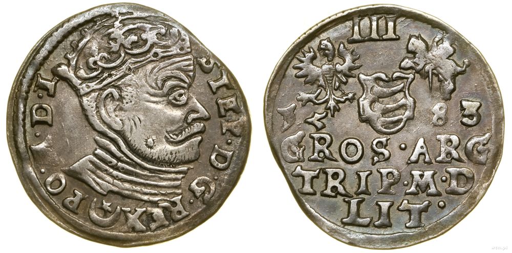 Opis: | Polska - Stefan Batory (1576–1586) - monety litewskie, trojak, 1583, Wilno, na awersie herb Leliwa, końcówki napisów L / LIT |