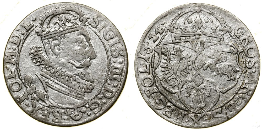 Opis: | Polska - Zygmunt III Waza (1587–1632) - monety koronne, szóstak, 1624, Kraków, arabska cyfra 2 w dacie |