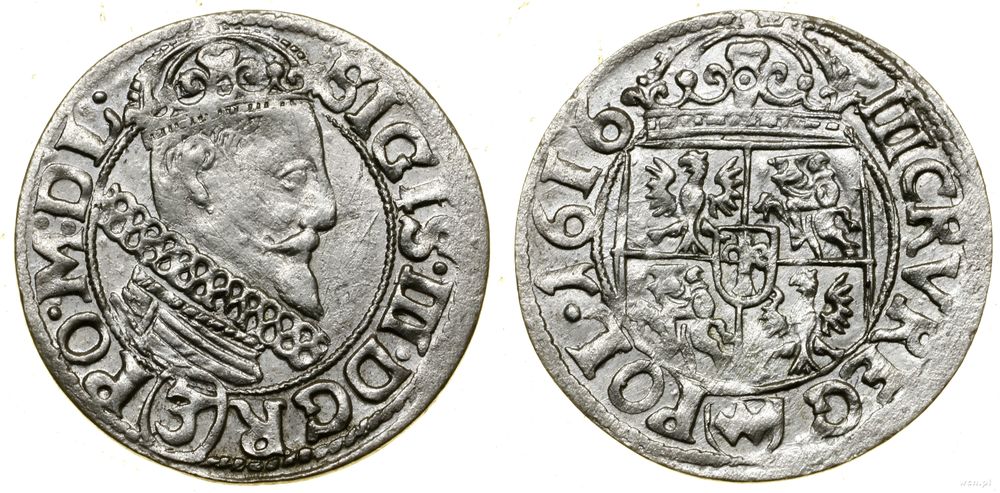 Opis: | Polska - Zygmunt III Waza (1587–1632) - monety koronne, trzykrucierzówka, 1616, Kraków, z herbem Awdaniec na rewersie |